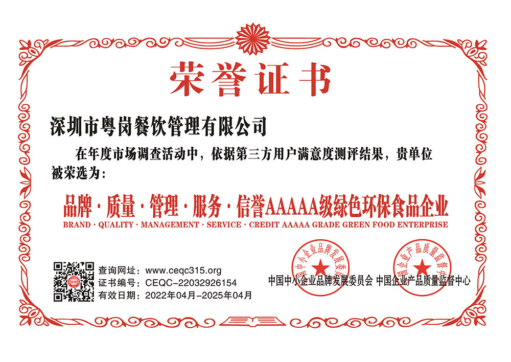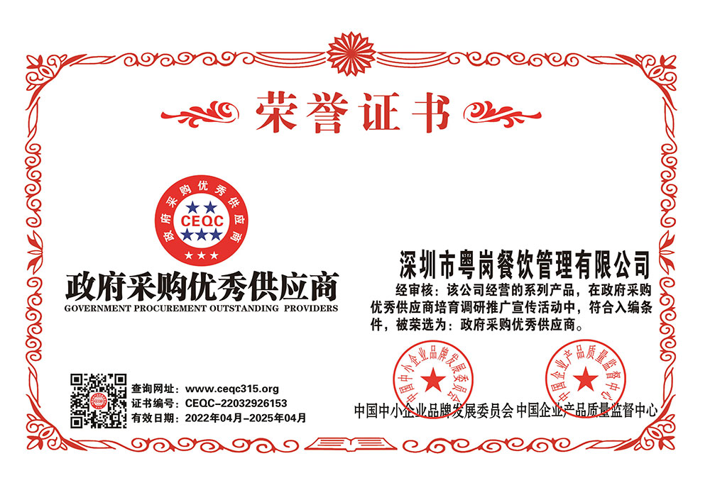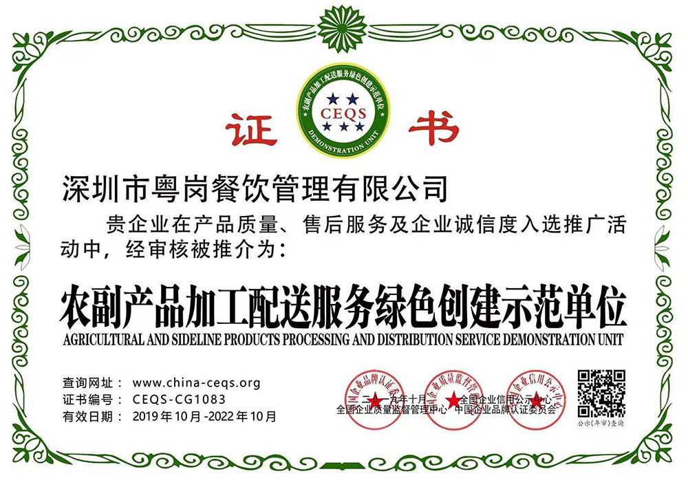 深圳市粵崗餐飲管理有限公司,是一家集蔬菜種植和農(nóng)副產(chǎn)品配送為一體的專業(yè)型餐飲公司,主要為學(xué)校、工廠企事業(yè)機關(guān)單位提供蔬菜和農(nóng)副產(chǎn)品配送服務(wù)。公司自成立以來始終以質(zhì)優(yōu)價廉、服務(wù)至上為原則,嚴格按照ISO:9001國際標準體系進行管理。同時建立了行業(yè)領(lǐng)先的配送中心、大型冷庫和保鮮庫、檢測中心以及專業(yè)化的配送團隊,能長期安全、穩(wěn)定、準時的配送貨物。我們所有蔬菜均經(jīng)過初步加工、無黃葉,無泥沙等雜質(zhì),利用率達97%以上...保障向用戶提供的各類食材的衛(wèi)生和質(zhì)量。公司為了適應(yīng)不同客戶的需求,配有專業(yè)人員和配送車輛,實行“一對一”的服務(wù)體制,一心一意的為客戶服務(wù),秉承粵崗誠實守信、服務(wù)第一、客戶至上的服務(wù)標準,真正讓客戶花最少的錢吃最好的菜。粵崗多年來何以欣欣向榮,因為我們知道只有勇于擔(dān)當責(zé)任,才能承擔(dān)更大的責(zé)任,就是因為 粵崗員工貫徹公司態(tài)度決定一切、細節(jié)決定成敗的真理,從質(zhì)量抓起,從服務(wù)做起,才創(chuàng)造了如今的規(guī)模化供應(yīng)、統(tǒng)一性配送、專業(yè)化服務(wù)的粵崗。